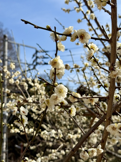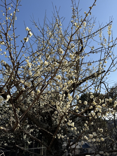 寒い日々が続いておりますが、美術館のお庭の白梅が咲いてきました。